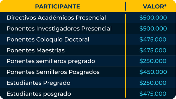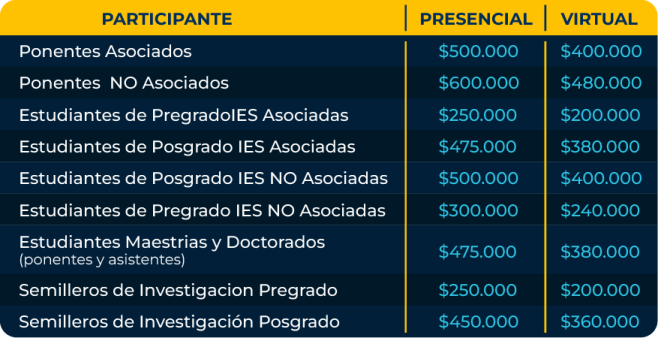 TARIFAS ENCUENTRO DE INVESTIGACION - MODALIDAD HIBRIDA